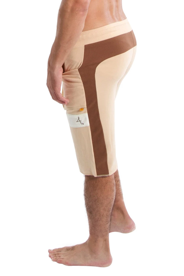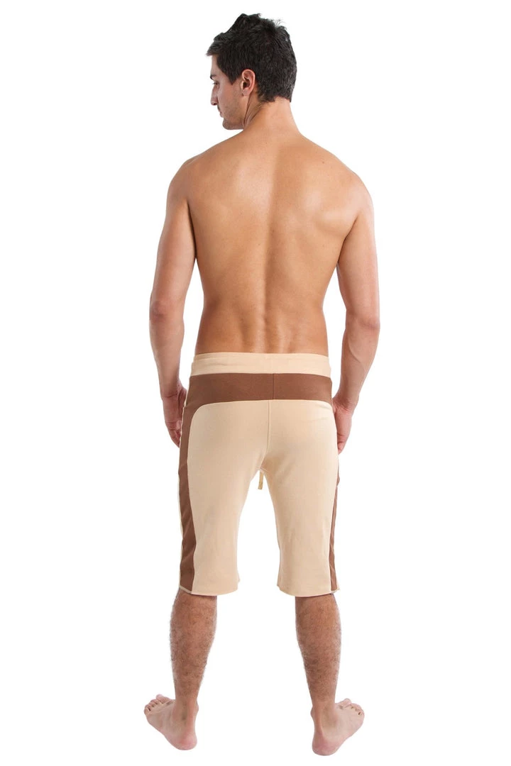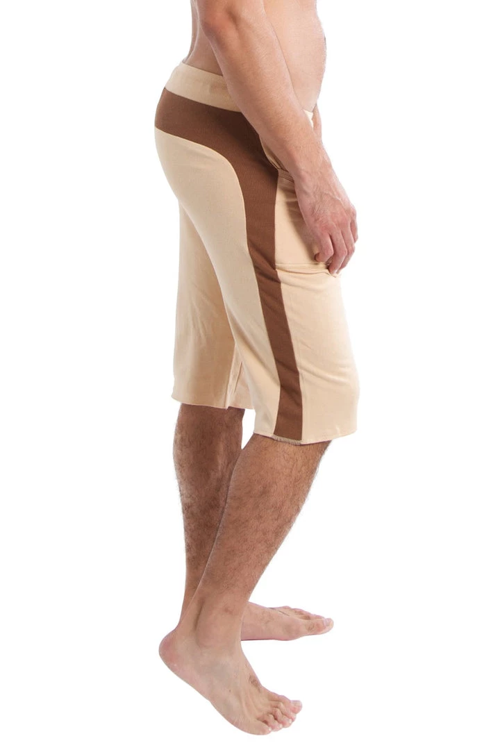 This light-weight Modal (Birch Tree) Mens Yoga Shorts have a “cut off” look at the knee — perfect for all climates. 2×1 RIB piping extends uninterupted from the sides up & above the rear-end — providing exceptional stability & flexibility during strenuous workouts like Yoga!Â