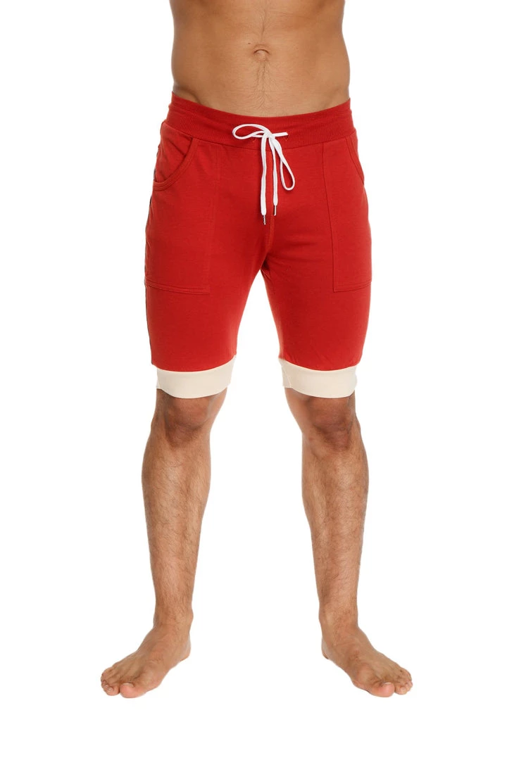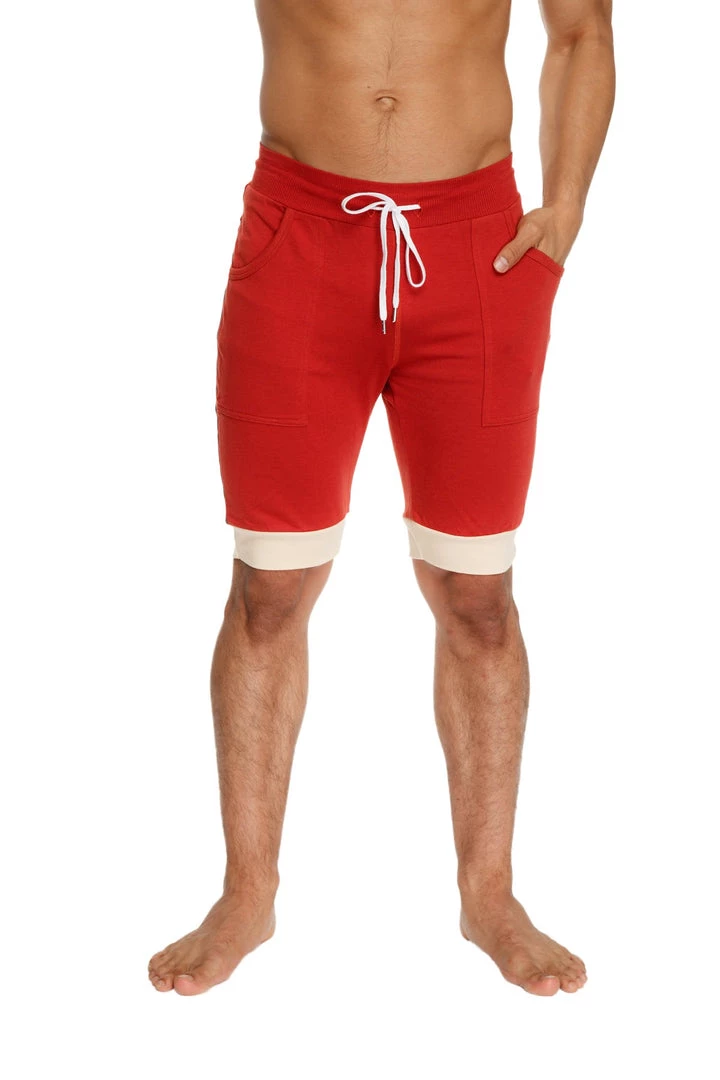 These light-weight Modal (Birch Tree) Mens Yoga Shorts are CUFFED at the bottom with very relaxed 2×1 rib fabric — keeping them in place during inversions & handstands, etc.
