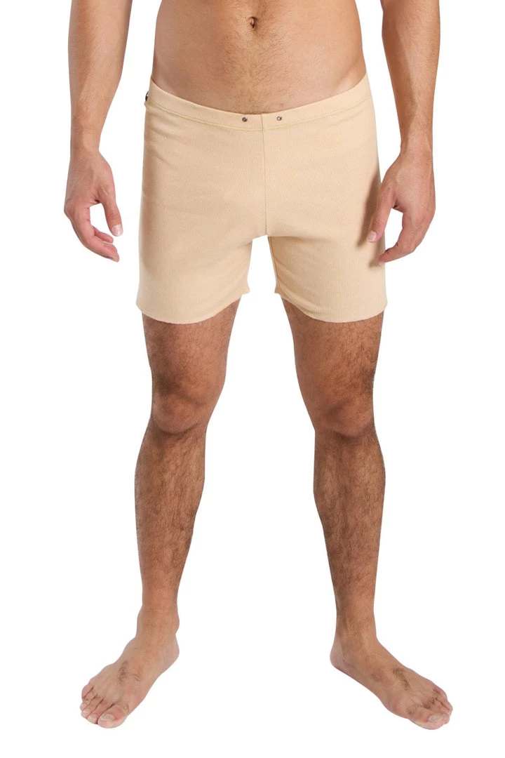 Super soft 2×1 “custom”-Modal RIB fabric is used exclusively to provide style, comfort & sleek lines — providing unlimited range of motion for vigorous exercise. Softer yet more durable than cotton, with superior moisture wicking – this short will last for years! Bamboo green thread at waistband provides contrast detail. “4” logo tab at top. “Compression” look without the tight grip… perfect for layering or covering up at the beach too!