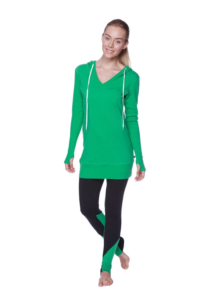 This Mid-Thigh length Hooded Top has a curved design that keeps the silhouette striking from all angles!Â