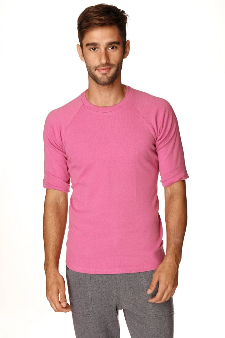 Raglan-design so no shoulder seams!! “Gathering” stitch under each arm sleeve allows for easy rolling that stays in place. NO side-seams, the only seam is down the center of the back with “4” logo tab at center/top.