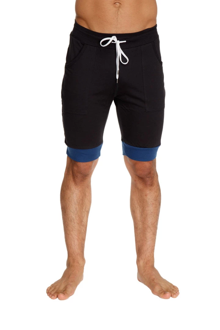 4-rth MEN Cuffed Yoga Short (Black W/Sand & Royal)