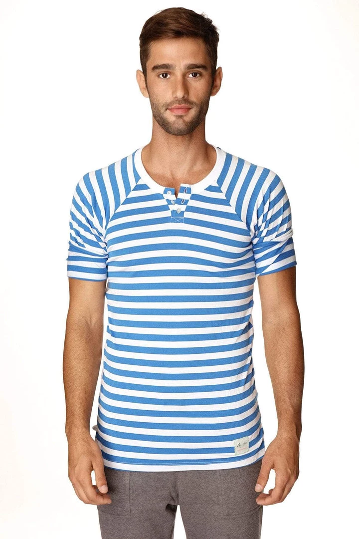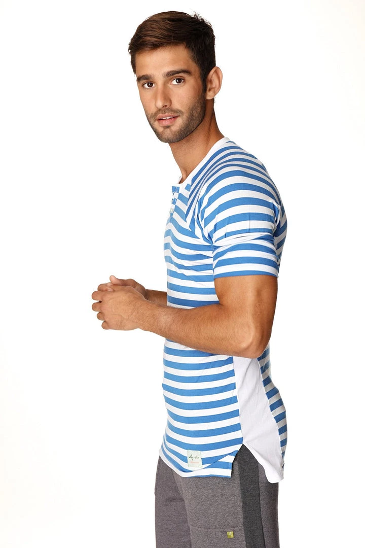 Hand-made in Los Angeles from custom Modal fabric — this light-weight and flexible-fabric Tee will last for years! The body is French Terry Modal in a light-weight fun stripe, with 2×1 Rib fabric used as paneling along the sides of the torso — for relaxed rotation & flexibility! The seam down the center of the back is a FLAT-lock stitch. The iconic “4” logo tab is on the top back of the neckline.