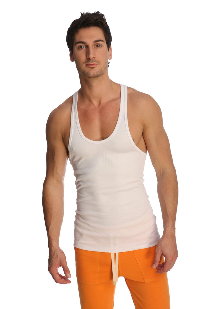 Our NEW “racer-back” tank with sharp attention to stitching & detail: 2×1 RIB fabric is used exclusively to provide utmost style, comfort & sleek contours — providing excellent range of motion for strenuous activities like Yoga & Pilates.Â