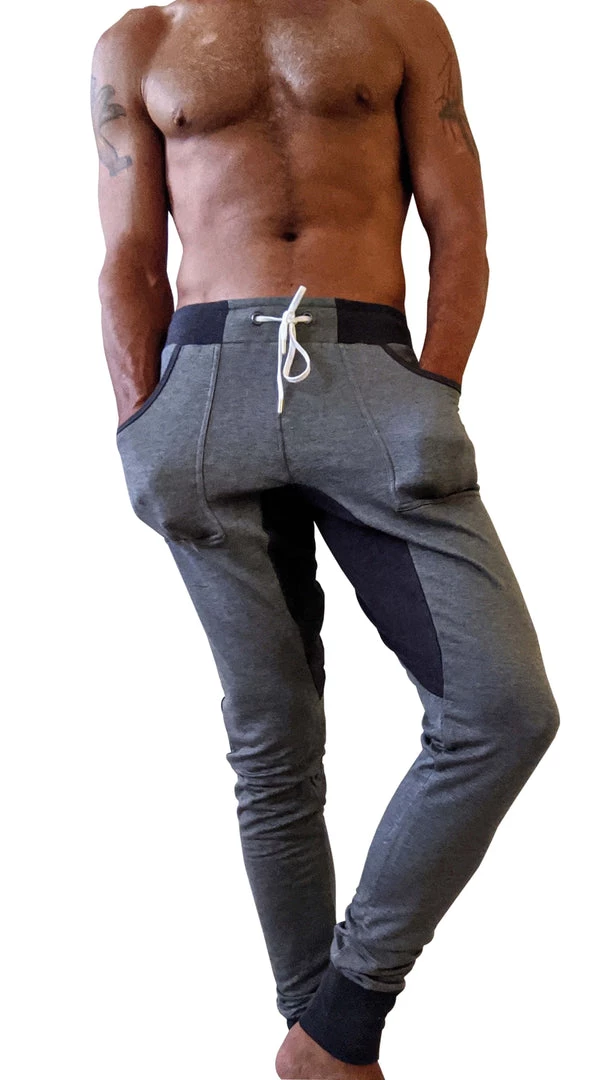1/4″ drawcord in contrasting White, with light-weight metal tips (they will NOT clang in the dryer). 2×1 rib cuff at the bottom will keep your pants in place during handstands or any other inversions! 6.5″ DEEP pockets that are sewn on top of the garment so they do not “float” inside. The rib piping provides unmatched flexibility for performance stretching.