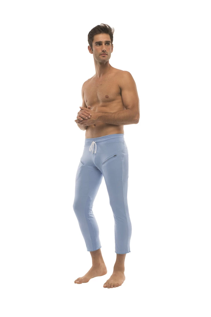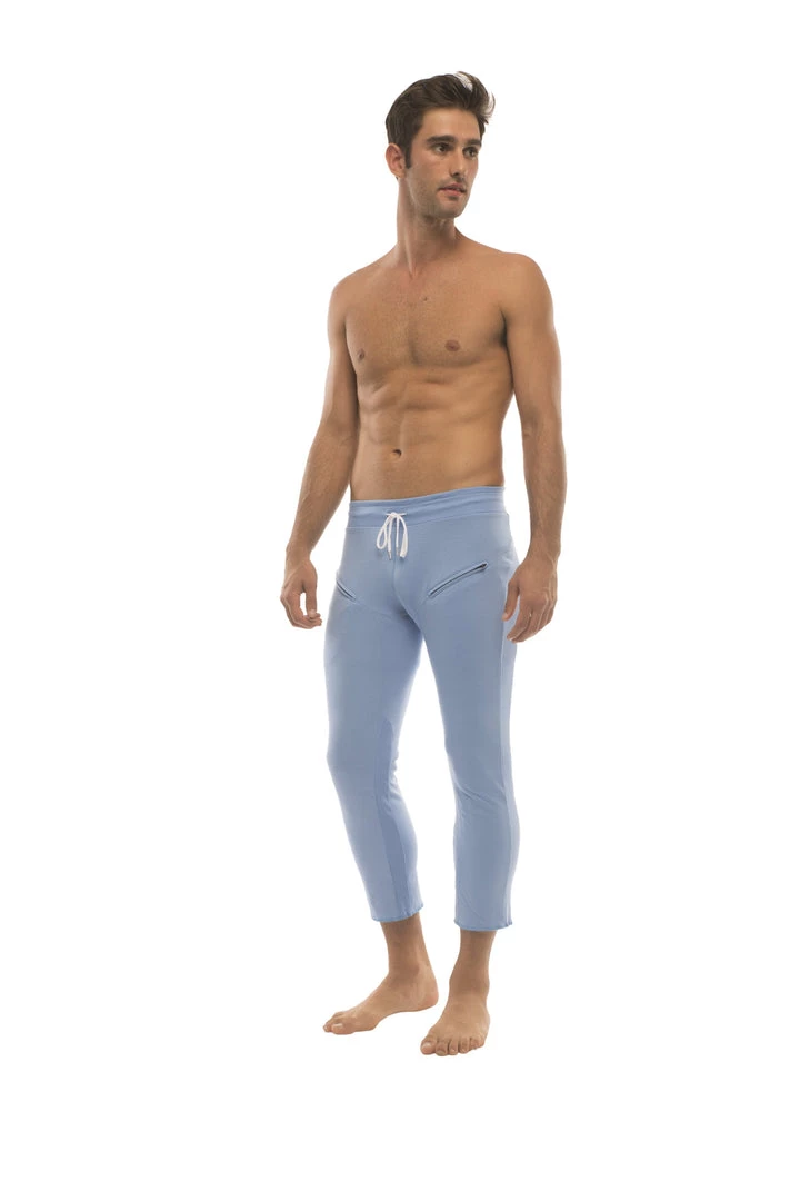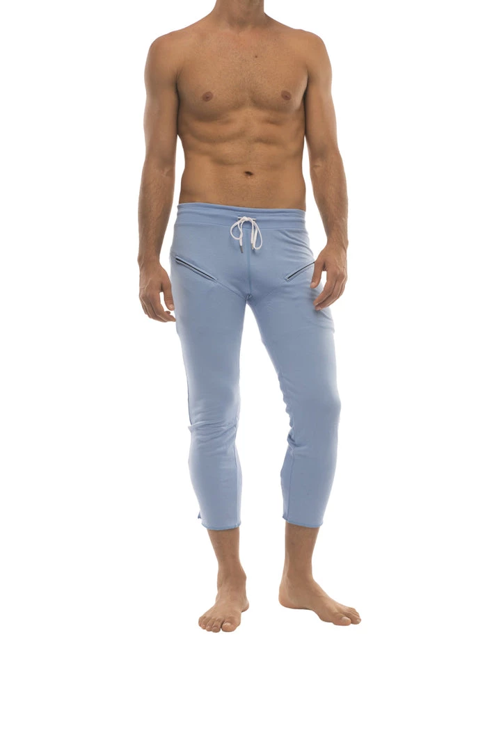 4-rth Mens 4/5 Zipper Pocket Capri Yoga Pants (Solid ICE Blue)