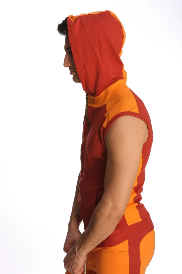 This is a great, form-fitting Sleeveless Hoodie to complement your biceps… and your workout as well!