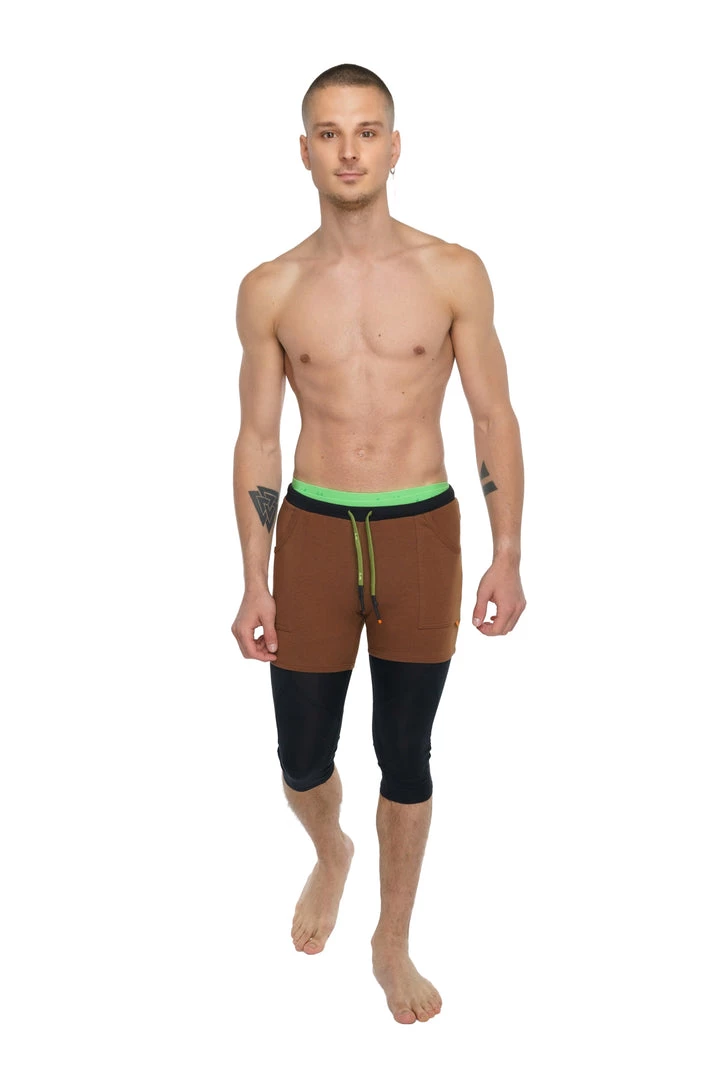 These light-weight Modal (Birch Tree) Mens Transition Yoga Shorts are a “hybrid” short merging the distance between our two most popular shorts — the Fusion Short and the Eco-Track Short.Â