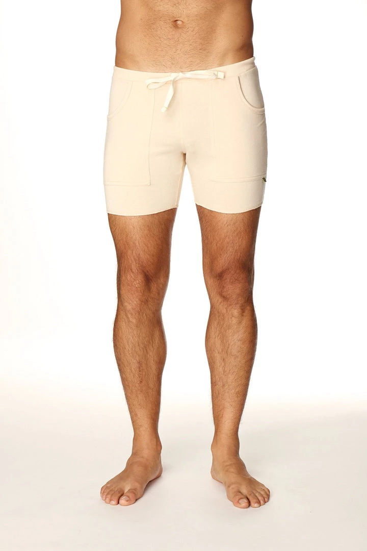 These light-weight Modal (Birch Tree) Mens Transition Yoga Shorts are a “hybrid” short merging the distance between our two most popular shorts — the Fusion Short and the Eco-Track Short.Â