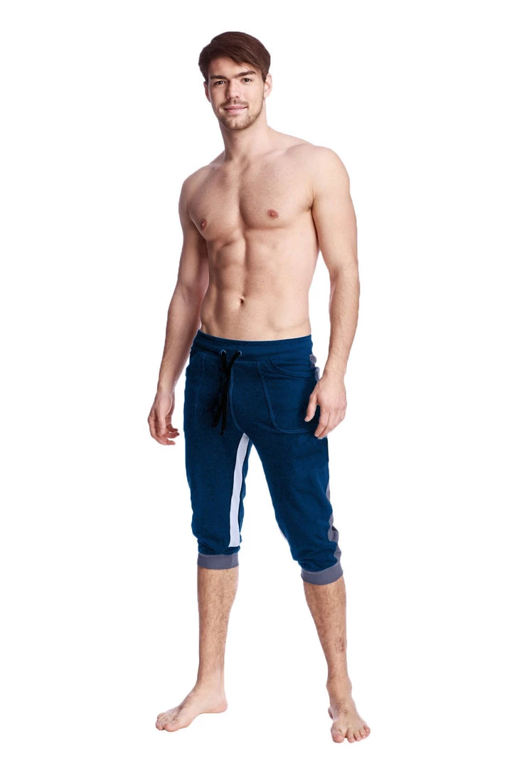 SIZING: With relaxed rib waistband, and drawcord, the size Small could work for someone as small as a 27″ waist; with an upper range of 31″. The Small has an inner-leg Inseam of 17″. The following are the ranges for the Medium: 30-33 waist, 18″ Inseam. Large: 33-36″w, with a 19″ Inseam. Â ALSO, as a general guideline, the MEDIUM would have a form-fitting (model-like) look for someone in the 6′ height range if they weighed between 165-175 pounds. Please go UP one size for more relaxed look or heavier builds!