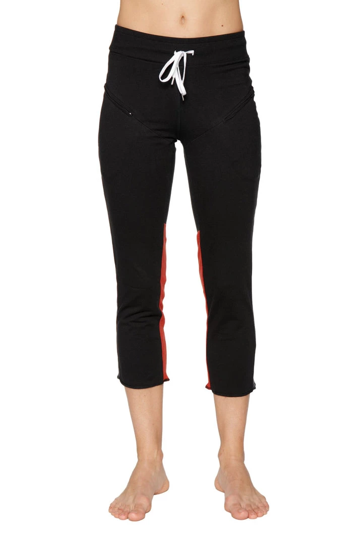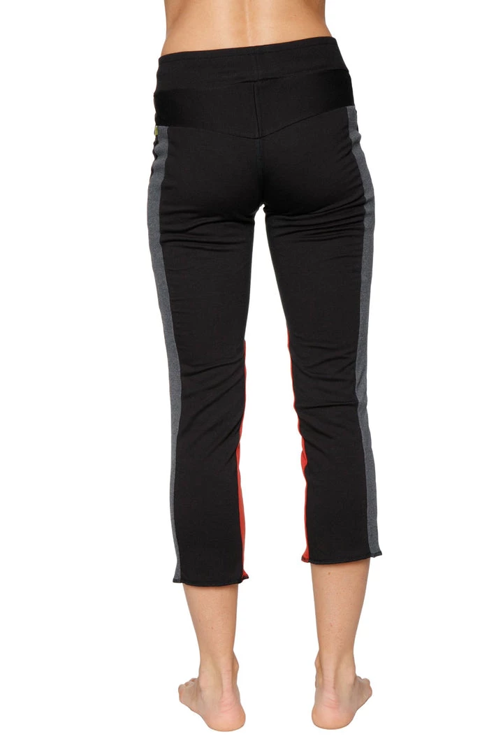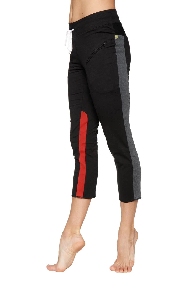 4-rth Women’s 4/5 Length Zipper Pocket Capri Yoga Pant (Black W/Charcoal & Red)