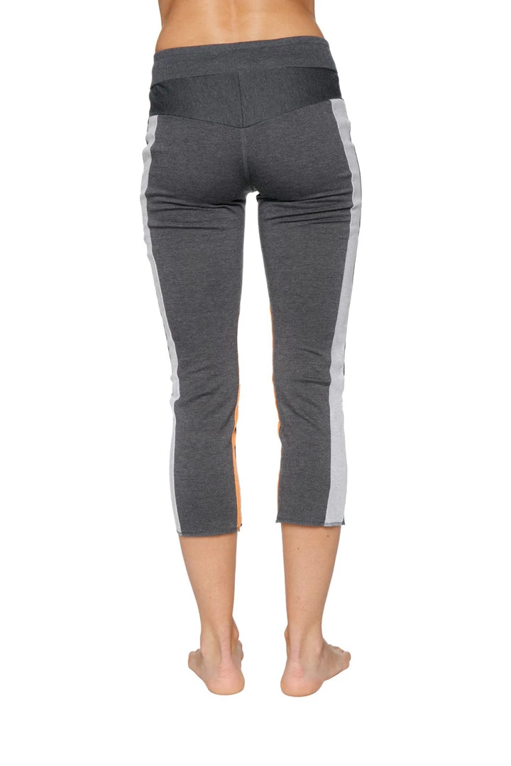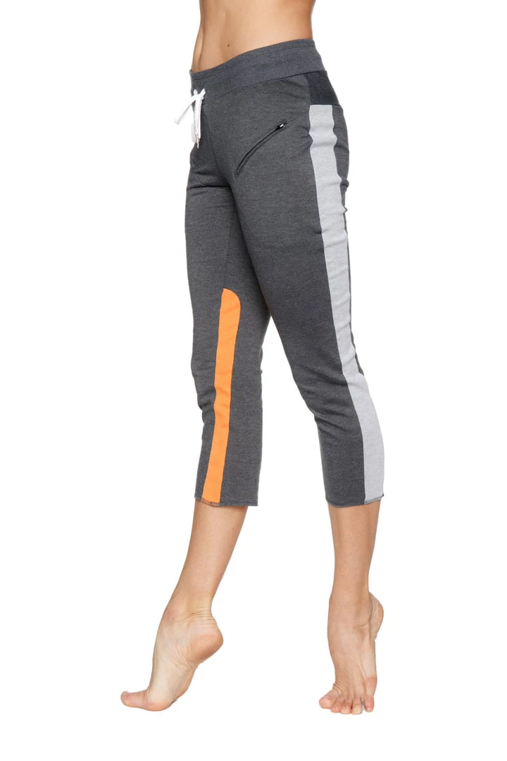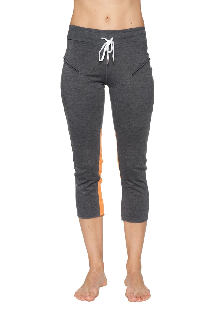4-rth Women’s 4/5 Length Zipper Pocket Capri Yoga Pant (Charcoal W/Grey & Orange)