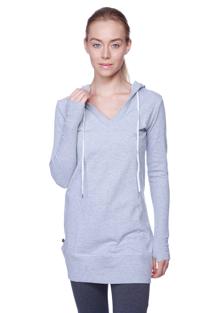 This Mid-Thigh length Hooded Top has a curved design that keeps the silhouette striking from all angles!Â