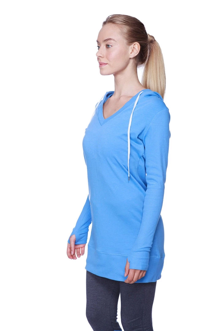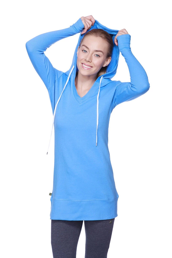 This Mid-Thigh length Hooded Top has a curved design that keeps the silhouette striking from all angles!Â